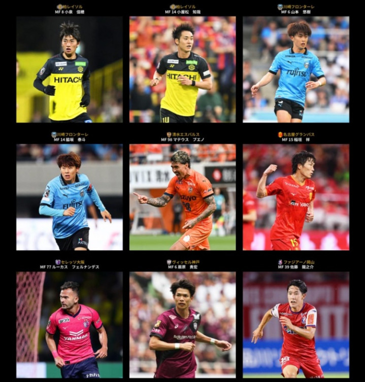中场:久保藤次郎(柏太阳神)、小泉佳穗(柏太阳神)、小屋松知哉(柏太阳神)、山本悠树(川崎前锋)、胁坂泰斗(川崎前锋)、马修斯·布埃诺(清水心跳)、稻垣祥(名古屋鲸)、卢卡斯·费尔南德斯(大阪樱花)、扇原贵宏(神户胜利船)、佐藤龙之介(冈山绿雉)、田中聪(广岛三箭)