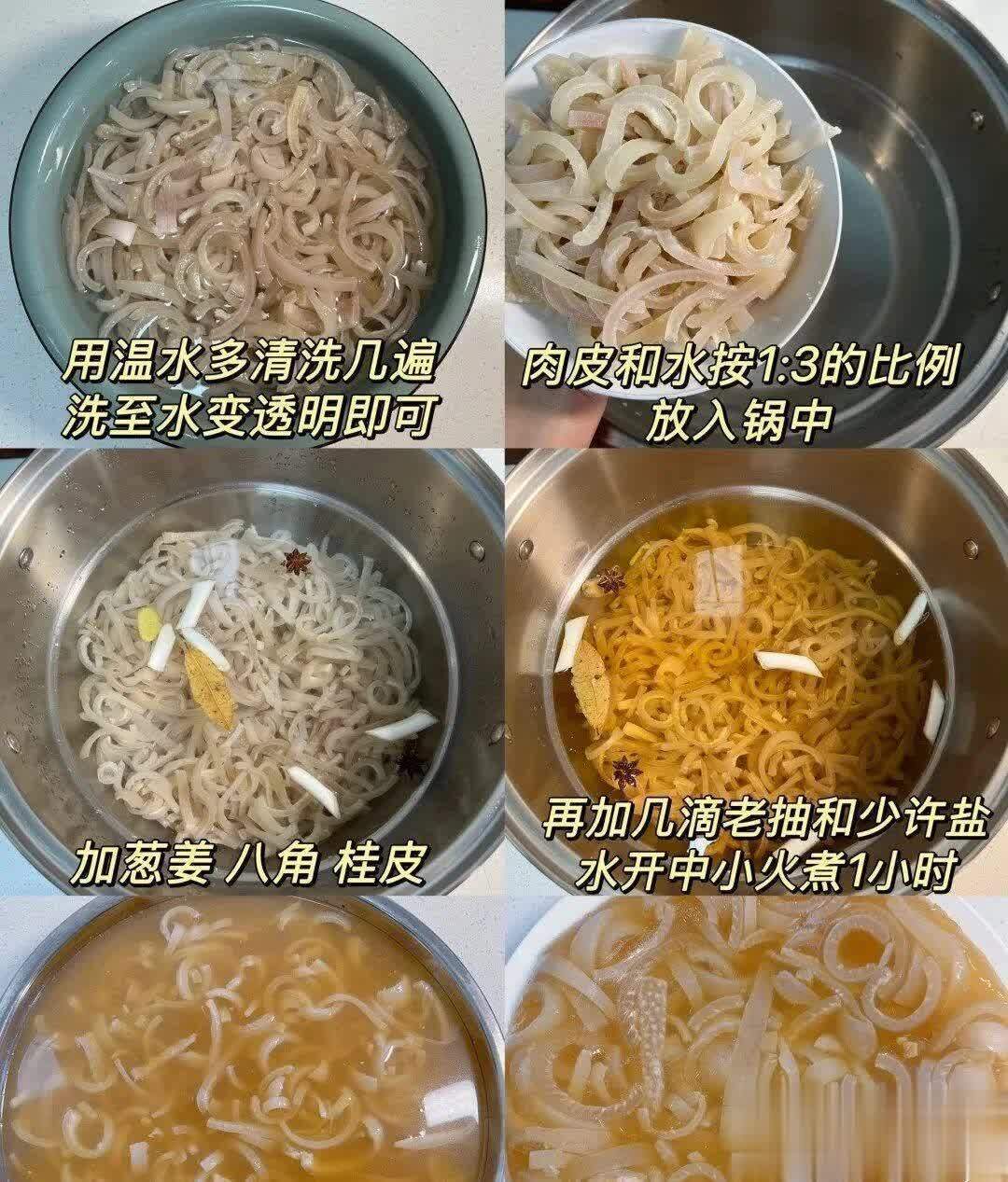 当然,猪皮同样可以做得既健康又美味。猪皮冻做法不算复杂:提前清洗煮透、去油脂、加水慢炖,加点调味,冷却凝固后切片蘸酱即可。想要简单清新些,还可以试试凉拌猪皮,用葱姜蒜、香油和辣椒配合,吃起来筋道又不腻。也有人用猪皮和豆腐搭配炖汤,汤头会变得浓白但不油腻,是不少家庭的暖胃首选。